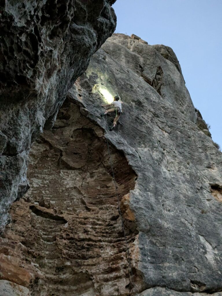 L’après-midi, Aubry ponce ses doigts sur une 7a laquelle se retrouve stratégiquement privée de